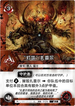 【守护者】(可以在对方攻击时守护) 支付【2费】, 摧毁扎雷尔 →你队伍中的目标单位本回合具有额外3点护甲值。