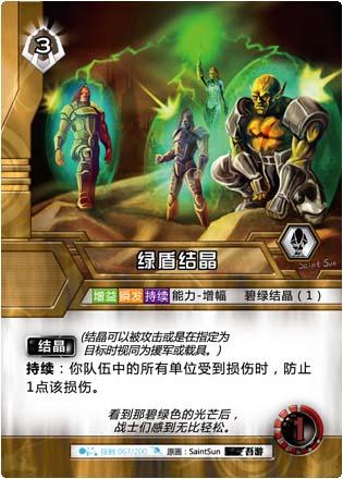 结晶(结晶可以被攻击或是在指定为目标时视同为援军或载具。) 持续:你队伍中的所有单位受到损伤时,防止1点该损伤。
